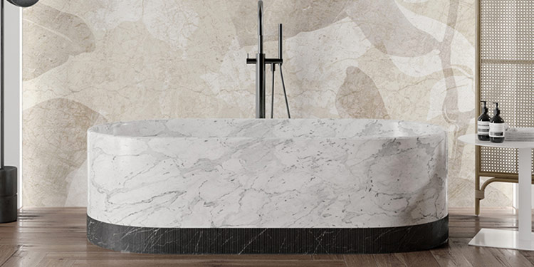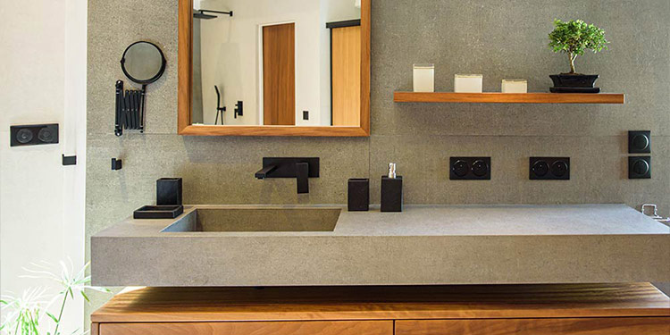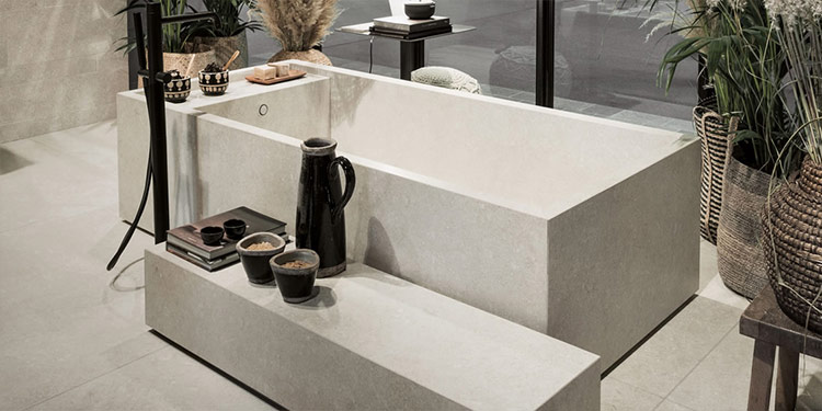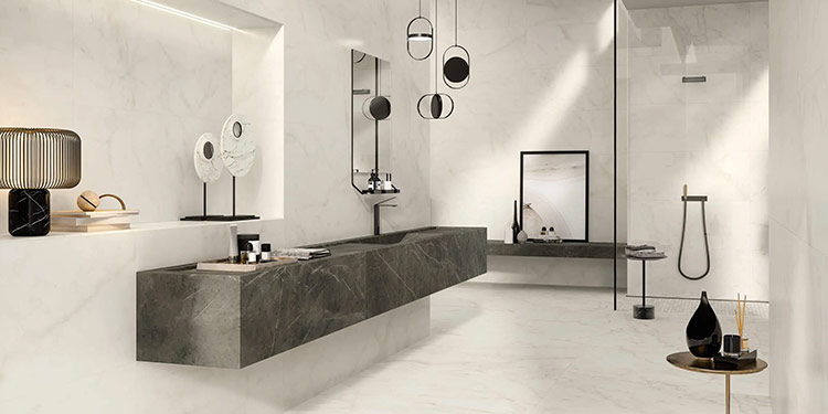 - Les grands formats simplifient l’entretien et modernisent l’espace.